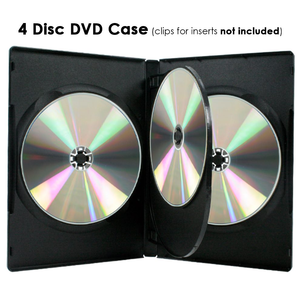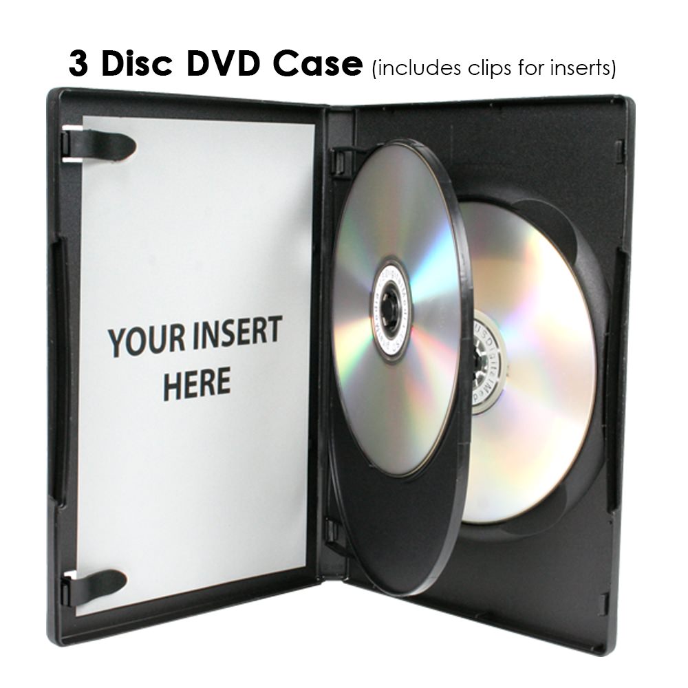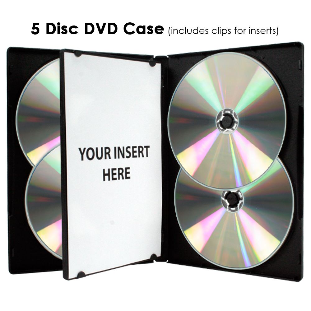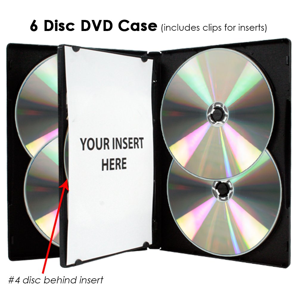 USDM multi-disc DVD cases are the same thickness of a standard single DVD case but hold 3-4-5-6 discs! The same dimensions provide the look and feel of normal DVD cases while giving you more space for discs. Each case is great for multi disc sets, designed to hold any full size disc, CD, DVD, or Blu-ray disc, and comes in standard black color. Each case includes a clear overlay on the outside for adding printable DVD case inserts from the top or bottom.